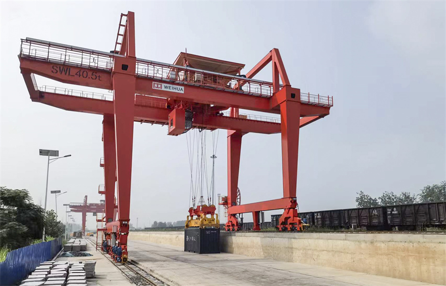 八月的风带来天清气朗——hth·华体轨道式集装箱门机在明媚阳光下昂首挺立,为“京杭运河第一港”物流运输保驾护航;