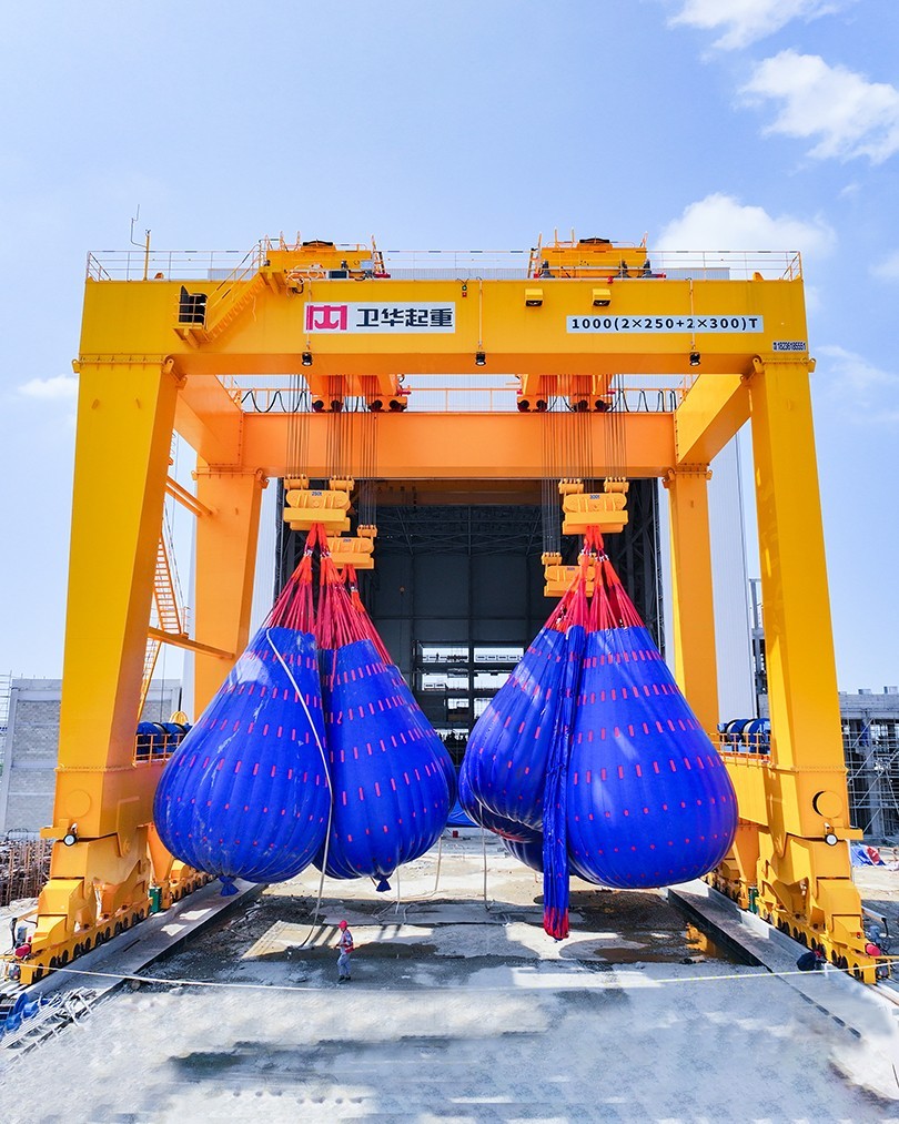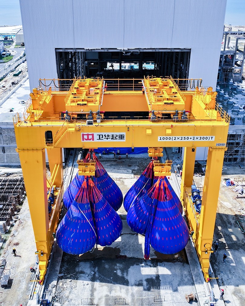 近日,在福建省福清市江阴港国家级海上风电研究与试验检测基地,河南hth·华体1000t双主梁门式起重机顺利完成重载实验并投入运营。